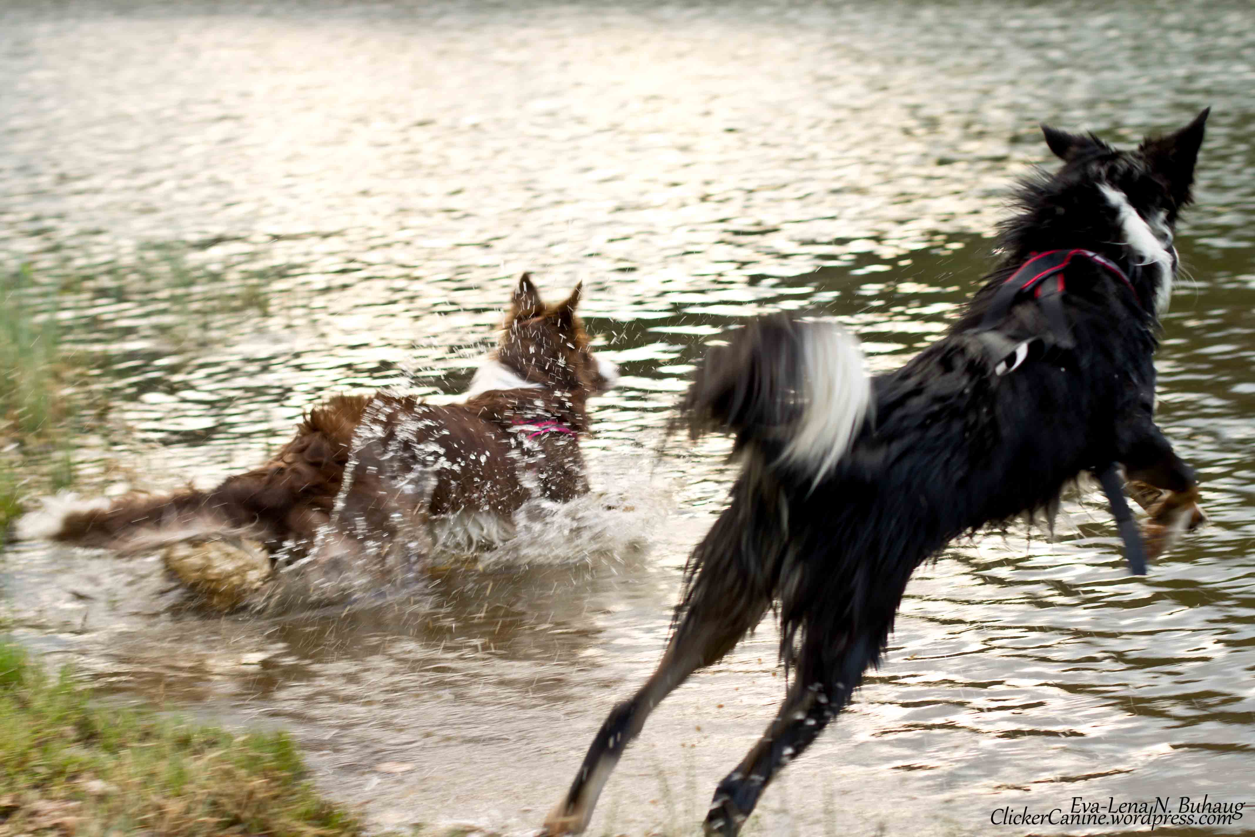 Luna playing in the water with Alfred